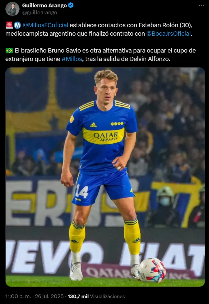 Pero ahora, a poco de haberse marchado, estaría cerca de convertirse en nuevo jugador de Millonarios. El periodista colombiano Guillermo Arango, reveló que el conjunto “Embajador” está en tratativas para contratar al ahora ex jugador del Xeneize.