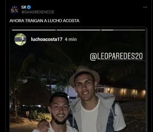 ¿De qué se trata? De una foto de Paredes junto a Luciano Acosta, exjugador de Boca que actualmente se encuentra en la MLS. Y su viralización vino acompañada de un deseo de los Xeneizes: “Ahora le toca a él”.