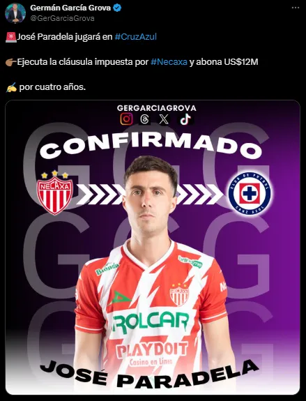 Ahora, un nuevo movimiento del club mexicano hace creer que pueden ir por el Chango. Según reveló el periodista Germán García Grova de Bolavip, José Paradela acaba de dejar el Necaxa para desembarcar en Cruz Azul por 12 millones de dólares.
