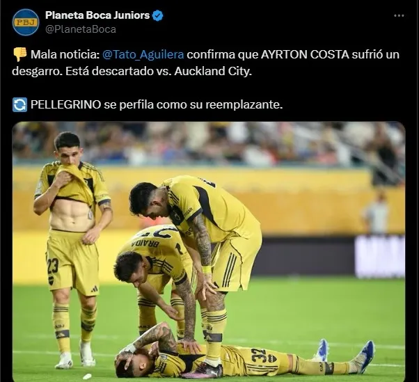 El domingo se confirmó una pésima noticia para Boca: Ayrton Costa se lesionó y no podrá jugar frente a Bayern Múnich. Y se trata de un desgarro muscular que pone también al jugador en duda para unos posibles octavos de final en caso de si el Xeneize pasa de ronda.
