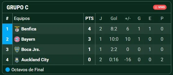 La segunda fecha acaba de iniciar y en el primer turno de la jornada, Benfica goleó 6-0 a Auckland City. Con este resultado, se ubica en lo más alto del Grupo C.