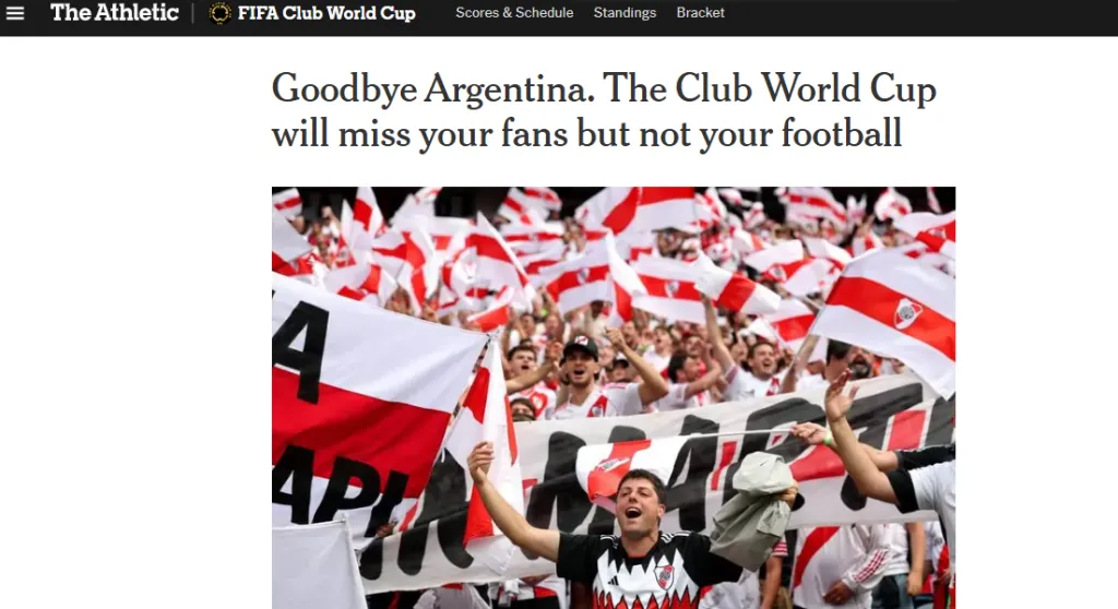 Sin embargo, luego de la temprana eliminación de los argentinos en el torneo, hubo un artículo durísimo del New York Times sobre los hinchas albicelestes. “Chau, Argentina. La competencia extrañará a tus fans, pero no tu fútbol“, titularon desde el periódico reconocido mundialmente.