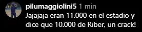 Los dichos del “Muñeco” no pasaron por alto y los simpatizantes de Boca se expresaron con todo tipo de comentarios en redes. “No le dan las cuentas“, “Eran 11 mil y dice que 10 mil eran de River” o “Dejen de poner excusas“, fueron algunos de los comentarios. Otros recurrieron a otros hechos y con un tono de broma, rememoraron el paso del rival de toda la vida por el Nacional B.