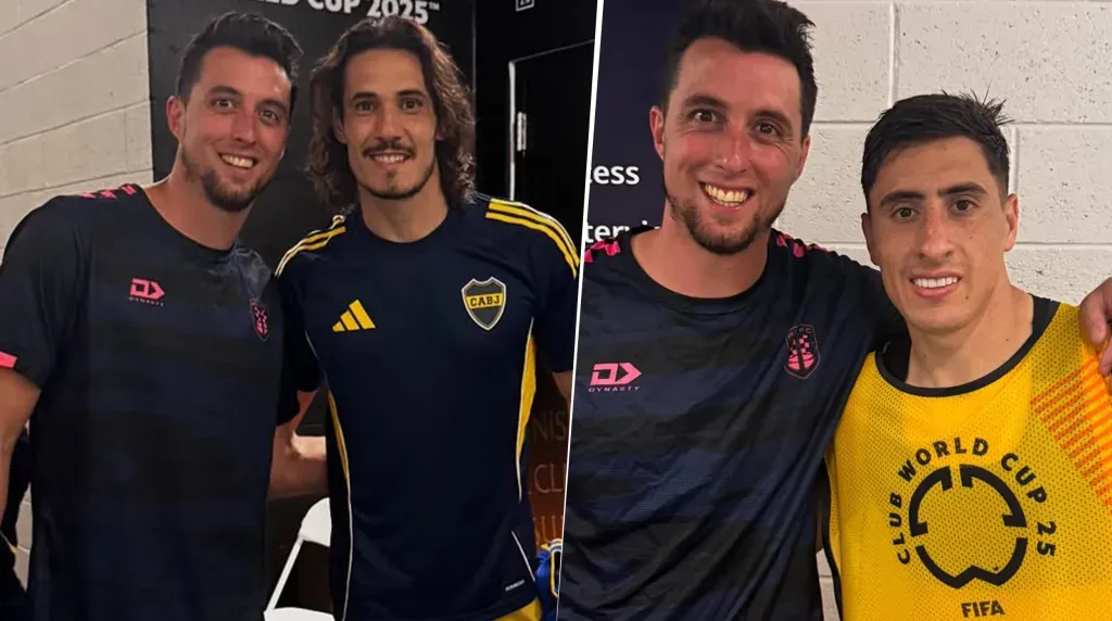 Las fotos de Sebastián Ciganda con Edinson Cavani y Miguel Merentiel después de Boca vs. Auckland City en el Mundial de Clubes