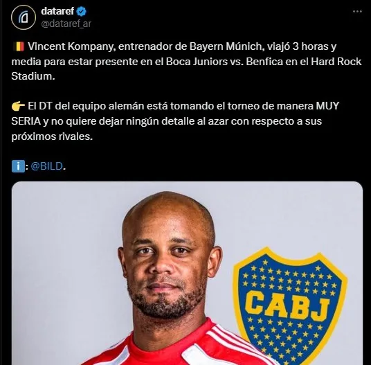 Por la segunda fecha del Grupo C del Mundial de Clubes, Boca se enfrentará con Bayern Múnich en el Hard Rock Stadium. Y se conoció una sorpresiva medida que tomó Vicent Kompany para estudiar al Xeneize.