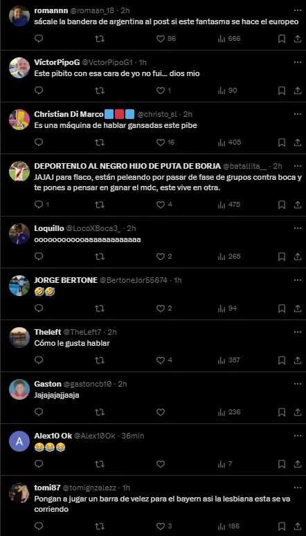 “Vendehumo“, “Apenas la tocó contra Boca“, “Cómo le gusta hablar“, fueron las respuestas que recibió la frase del ex Vélez. Pero el joven futbolista ya viene sumando porotos contra los fanáticos del Xeneize debido a las fuertes declaraciones que tuvo tras el empate 2 a 2 de la primera fecha.
