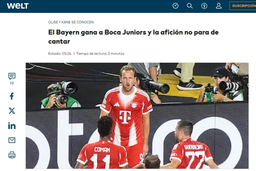 “La afición apoyó con entusiasmo a los argentinos, enardeciendo aún más el ambiente”, escribieron en uno de sus últimos artículos. Mientras que el sitio “Welt”, elogió a los Xeneizes y título: “El Bayern gana a Boca y la afición no para de cantar“, sumado a otro fragmento con grandes palabras para los xeneizes: “La afición argentina abucheó sin piedad al equipo muniqués durante 90 minutos, creando un ambiente propio y cantando sin parar”.