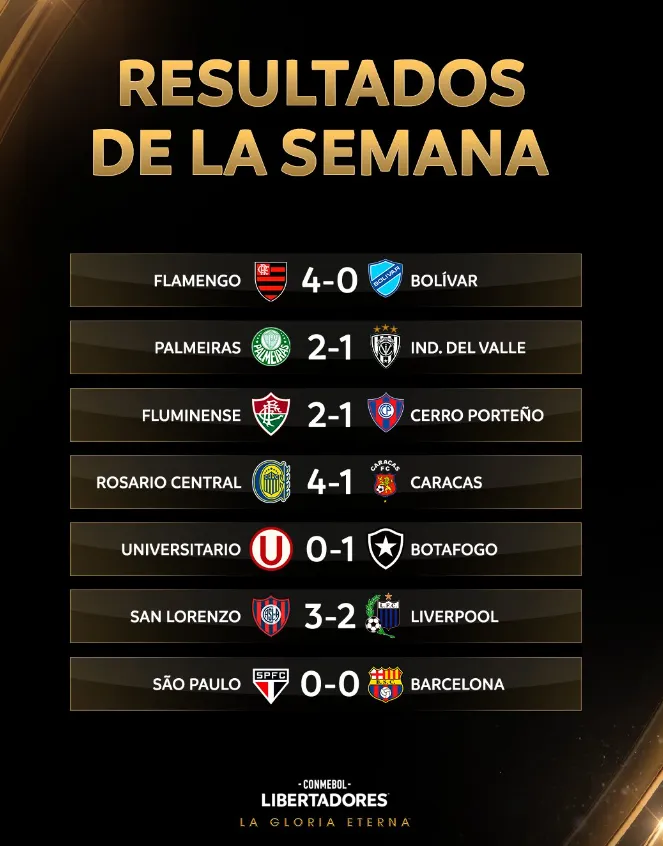 Esta fecha da saldo positivo para el Xeneize. Es que en la noche del jueves se dieron tres resultados que acercan a los de Diego Martínez a la gran cita en 2025: Palmeiras le ganó 2-1 a Independiente del Valle, Fluminense 2-1 a Cerro Porteño y San Lorenzo 3-2 a Liverpool de Uruguay.