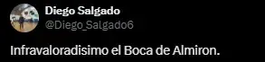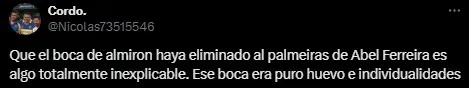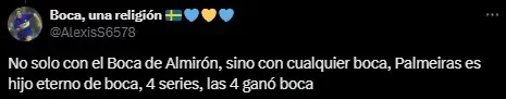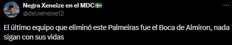 Desde que Abel Ferreira asumió en el cuadro paulista, Palmeiras dio 10 vueltas olímpicas y los simpatizantes del Único Grande sacaron pecho por la semifinal que se dio en 2023. En aquella ocasión, Boca se impuso por penales y los hinchas no se olvidaron. “Y se fueron completamente domados por el Boca de Almirón”, “Domados por estos dos (Almirón y Valentín Barco)” o “Infravaloradísimo el Boca de Almirón” fueron algunos de los comentarios en “X” (Twitter).