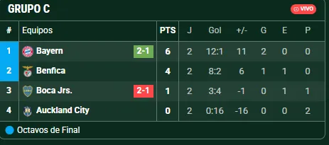 Llegó la segunda fecha de la fase de grupos del Mundial de Clubes y en el último turno de la jornada del viernes, Boca volvió a verse cara a cara con Bayern Múnich, después de 24 años. El partido más atractivo del torneo acaba de finalizar y el equipo de Miguel Ángel Russo cayó por 2 a 1. Con este resultado, hay cambios en la tabla de posiciones y todo se definirá el próximo martes.