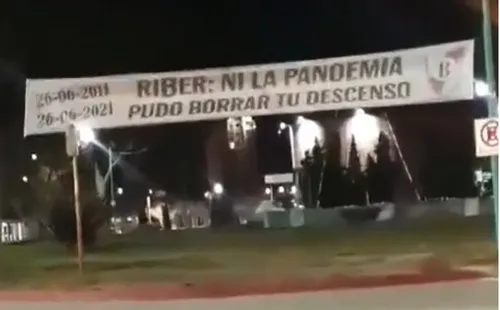 “A 10 años de tu ‘B’elorio”, “Riber: ni la pandemia pudo borrar tu descenso” y “Sábado 26 de junio. Te invito a mi cumple, 10 añitos. Lugar: Estadio Mudomental. Traer piedras y encendedores. Los esperamos”, fueron algunos de los mensajes. Mirá los afiches: