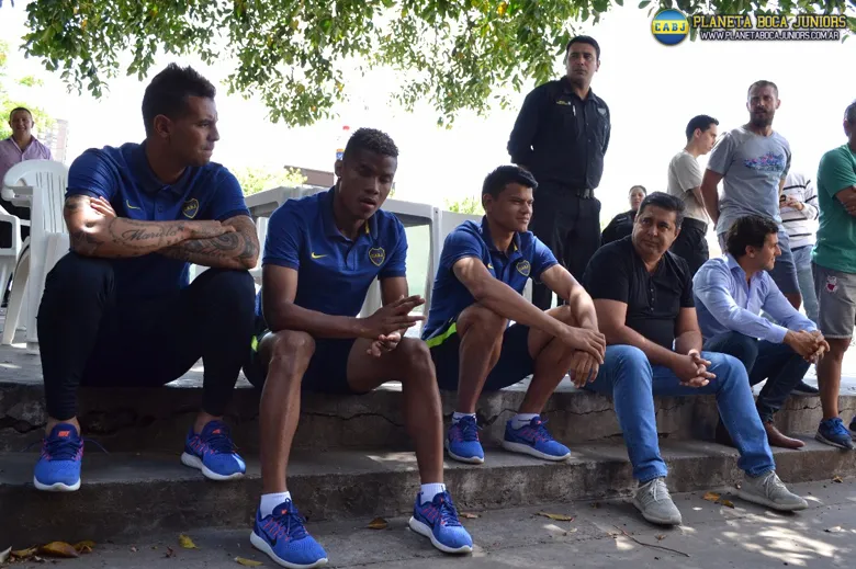 Nueva actividad inclusiva de Boca. Wilmar Barrios, Edwin Cardona y Walter Bou visitaron junto a Angelici el Instituto de Menores San Martín y aconsejaron a más de 30 chicos en su proceso de reinserción.
