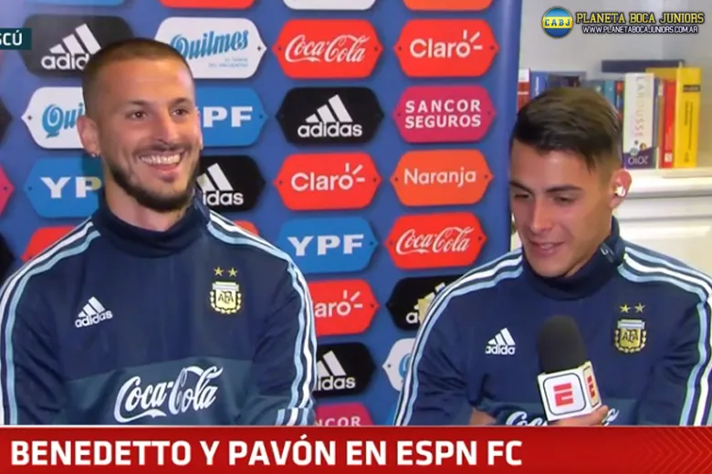 Ahora los dos se fueron a Rusia a participar del amistoso de la Selección Argentina. Entre risas y para festejar el día del periodista deportivo, Darío Benedetto se animó y “le hizo una nota” a Cristian Pavón.