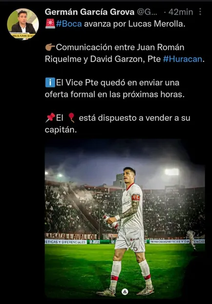 Así lo contó el periodista Germán García Grova, que destacó “existió una comunicación entre Juan Román Riquelme y David Garzón, presidente de Huracán. El Vicepresidente de Boca quedó en enviar una oferta formal en las próximas horas”.