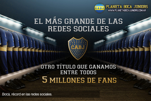 Boca es pasión de multitudes también en las redes sociales y este domingo marcó un nuevo récord al lograr la primera Fan Page de la Argentina, no sólo a nivel clubes, con más de 5.000.000 de seguidores en Facebook.