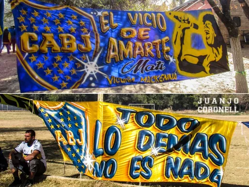 En el Club Comunicaciones sobran las palabras. Todo se resume a dos banderas que lo explican todo. En una se utiliza a la “Mona” Jiménez para entregarse a Boca al leer “El vicio de amarte”. La otra es más notoria, está sola en un alambrado con una verdad absoluta: “C.A.B.J Todo lo demás no es nada”.