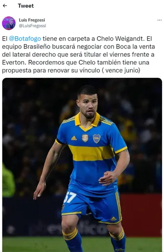 Y ahora apareció un interesado por llevárselo. Según contó el periodista Luis Fregossi, el Botafogo de Brasil viene a la carga por el lateral. “El equipo brasileño buscará negociar con Boca la venta del lateral derecho que será titular el viernes frente a Everton”, destacó el cronista.