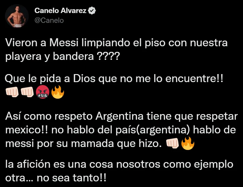 Las redes sociales explotaron el domingo por la noche. Tras la victoria de la Selección Argentina sobre México en el Mundial de Qatar 2022, la disputa entre ambos países siguió en Internet. Y se metieron dos deportistas de elite de ambos países: la historia inició por medio de Canelo Álvarez.