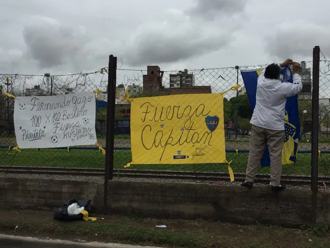 “Fernando Gago, 100 x 100 bostero, fueza. Rusia 2018 te espera”, reza la pancarta que se vio hoy en el Complejo Pedro Pompilio.