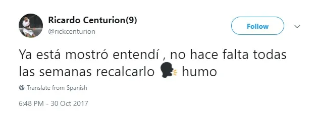 El tweet de Centurión: