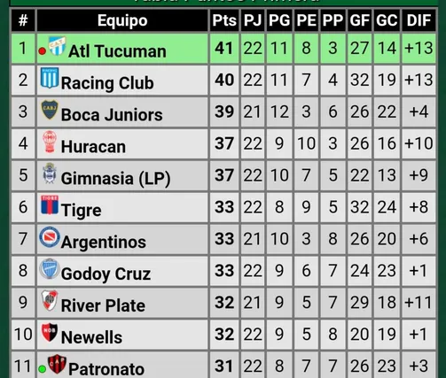 Tras perder en Paraná, los tucumanos siguen manteniendo la punta con 41 puntos. Pero Boca (39) puede pasarlo: si consigue la victoria ante Vélez, terminará la fecha arriba de todos con 42 unidades. Sin embargo, un empate ante el Fortín lo dejaría nuevamente en la segunda posición (40 puntos) de la Liga Profesional, lugar que ahora ocupa en soledad Racing. Una derrota, lo mantendrá en en el tercer puesto a dos del líder.