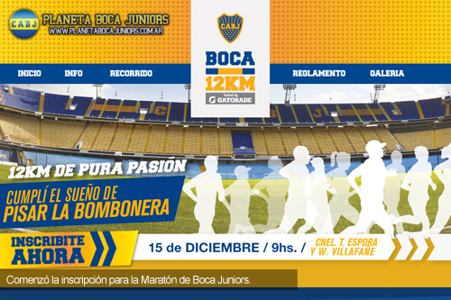 Para cerrar el 2013, Boca Juniors organizó una maratón, donde los hinchas podrán darse el lujo de correr por las calles aledañas al estadio y además tendrán la oportunidad de pasar por el campo de juego de La Bombonera. Habrá dos tipos de distancias: la principal de 12 kilómetros y la participativa de 3.