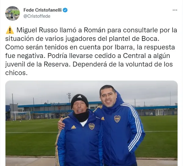 El periodista Federico Cristofanelli informó que “Russo consultó por varios jugadores del plantel y como serán tenidos en cuenta, la respuesta fue negativa”. Y sumó: “Podría llevarse cedido a algún juvenil de la Reserva y dependerá de la voluntad de los chicos”.