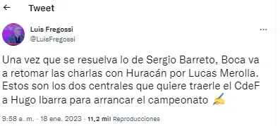 Además, el cronista aclaró que “una vez que se resuelva lo de Sergio Barreto, Boca va a retomar las charlas con Huracán por Lucas Merolla”. El objetivo es cerrar las dos incorporaciones antes de la primera fecha de la Liga Profesional, el 29/1 ante Atlético Tucumán en La Bombonera. ¿Tachamos la doble?