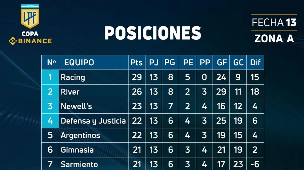 En la última jornada de la fase inicial, Newell’s (23 puntos) visitará a Gimnasia de La Plata (21 puntos); Defensa y Justicia (22 puntos) recibirá a Patronato y Argentinos Juniors (22 puntos) será local de Unión. Todos los partidos se jugarán en simultáneo desde las 16 horas.