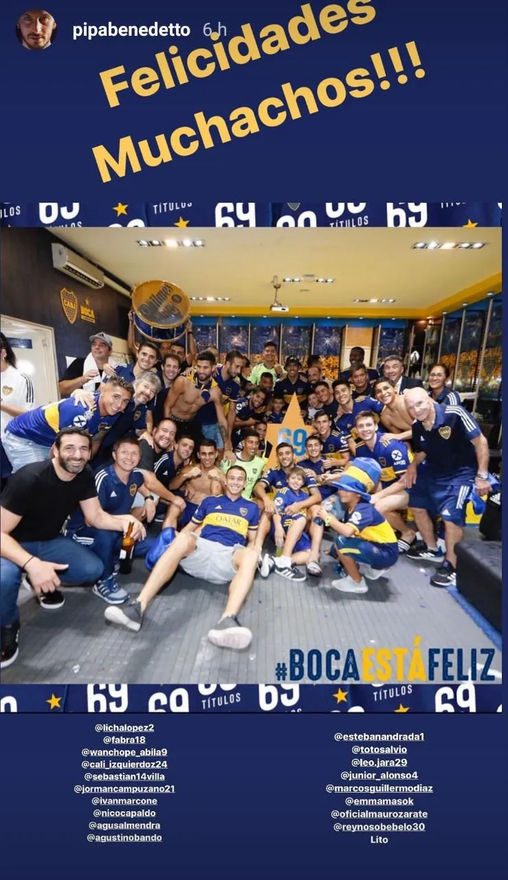 Por eso, durante los festejos por el campeonato conseguido en la noche del sábado, el ‘Pipa’ se expresó a través de redes sociales. “¡Vamos Boquita querido! ¡Felicidades, campeón! ¡Felicidades, muchachos”, escribió en su Instagram oficial con varias imágenes de sus excompañeros. Al mismo tiempo, la cuenta del Olympique de Marsella le envió sus felicitaciones al azul y oro.
