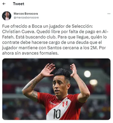 Detalle importante: Boca tendría que "hacerse cargo" de una millonaria deuda por Cueva