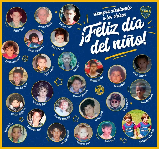 Este domingo se celebra el Día del Niño y por eso el club armó una gráfica especial. En la placa aparecen todos los jugadores del plantel actual cuando eran chicos.
