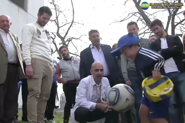 Dieguito tomó una pelota y empezó a hacer jueguitos. Su habilidad sorprendió y en particular asombró a Fernando Gago. El capitán del Xeneize lo abrazó y se tomaron fotos. Dieguito tuvo su premio: Angelici lo invitó a La Bombonera este domingo para ver el debut en la Superliga ante Olimpo.