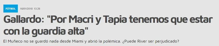 “Que Macri haya sido presidente de Boca o Tapia sea hincha de Boca nos hace tener que estar con la guardia alta siempre. Pero yo debo enfocarme en lo mío y nosotros tenemos que defendernos con nuestras armas”.