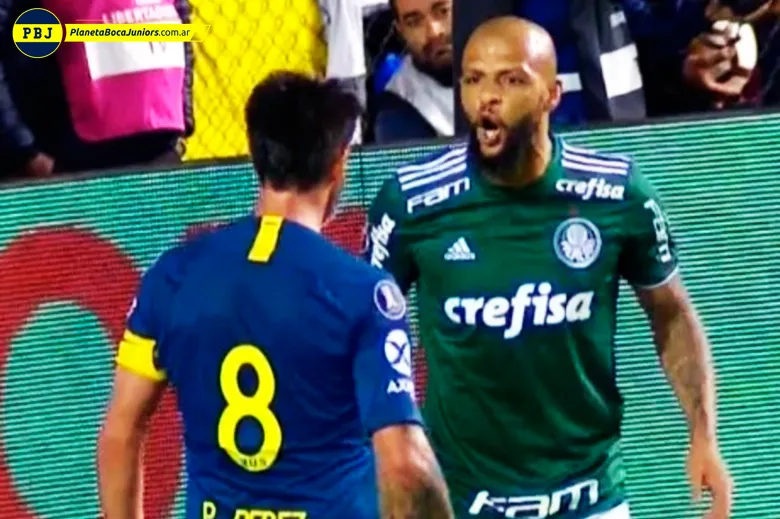 En ese primer tiempo, hubo un tenso cruce entre Pablo Pérez y Felipe Melo. El capitán de Boca sintió un golpe cuando fue a trabar con el brasileño y se enojó fuerte. Cuando lo fue a buscar, Melo no se achicó y ambos se insultaron.
