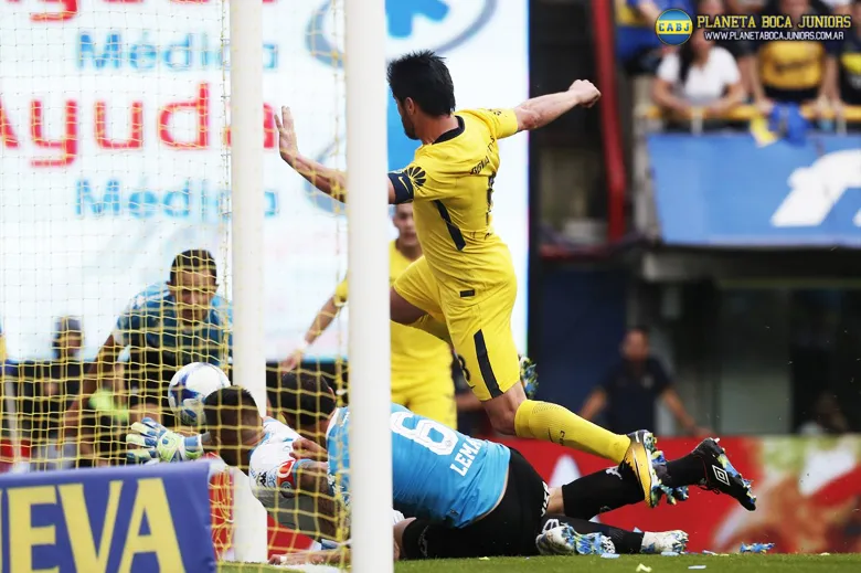 Todos lo vimos. Pavón tiró el centro, Pérez apuró y entre el arquero y el defensor de Belgrano hubo gol en contra. La repetición muestra como el taco del guardameta (Lucas Acosta) la empuja hacia adentro.