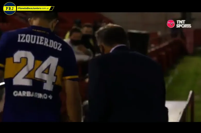El partido había finalizado y los jugadores se encaminaban al vestuario. Ahí se vio la charla: Carlos Izquierdoz y Miguel Ángel Russo se retiraron juntos del campo de juego, conversando sobre el partido.