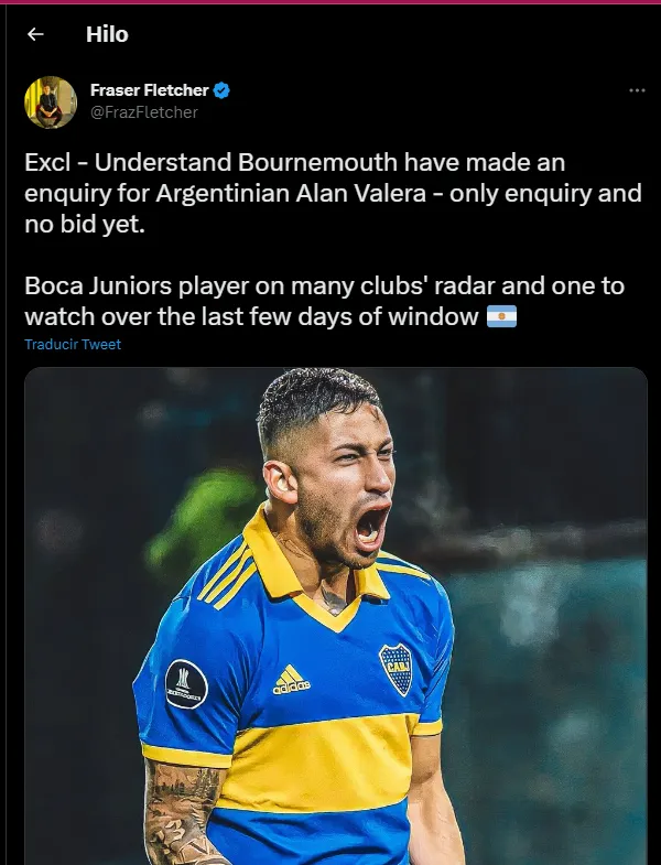 Fue el periodista de la BBC, Fraser Fletcher, quien deslizó “Bournemouth ha hecho una consulta por el argentino Alan Varela”. Aunque aclaró que por el momento fue “solo una consulta y ninguna oferta formal”.