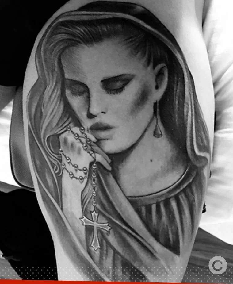 Luego, un festejo especial, señalándose el muslo: ahí tiene un tatuaje con la cara de su mujer, Natalie Weber. El jugador explicó por qué: