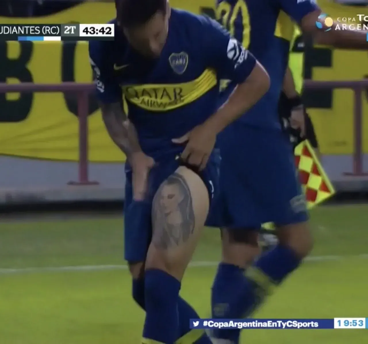 Mauro convirtió el segundo gol de Boca y se señaló el tatoo con la cara de su esposa. Mirá la foto y la explicación del jugador.