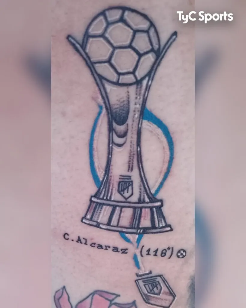Los jugadores del cuadro de Avellaneda terminaron emocionados y algunos hinchas decidieron inmortalizar la conquista en la piel. Sí, más allá de haber llegado a la competencia como subcampeones de la Liga Profesional, en las redes sociales se viralizó un tatuaje insólito que muestra el nombre de Carlos Alcaraz, el minuto del gol mal escrito y la copa.