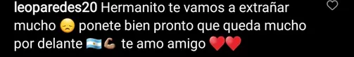 Las respuestas no tardaron en llegar y varios compañeros acompañaron a “Gio”, entre ellos Leandro Paredes. “Hermanito te vamos a extrañar mucho. Ponete bien pronto que queda mucho por delante. Te amo amigo”, expresó el futbolista de Juventus.