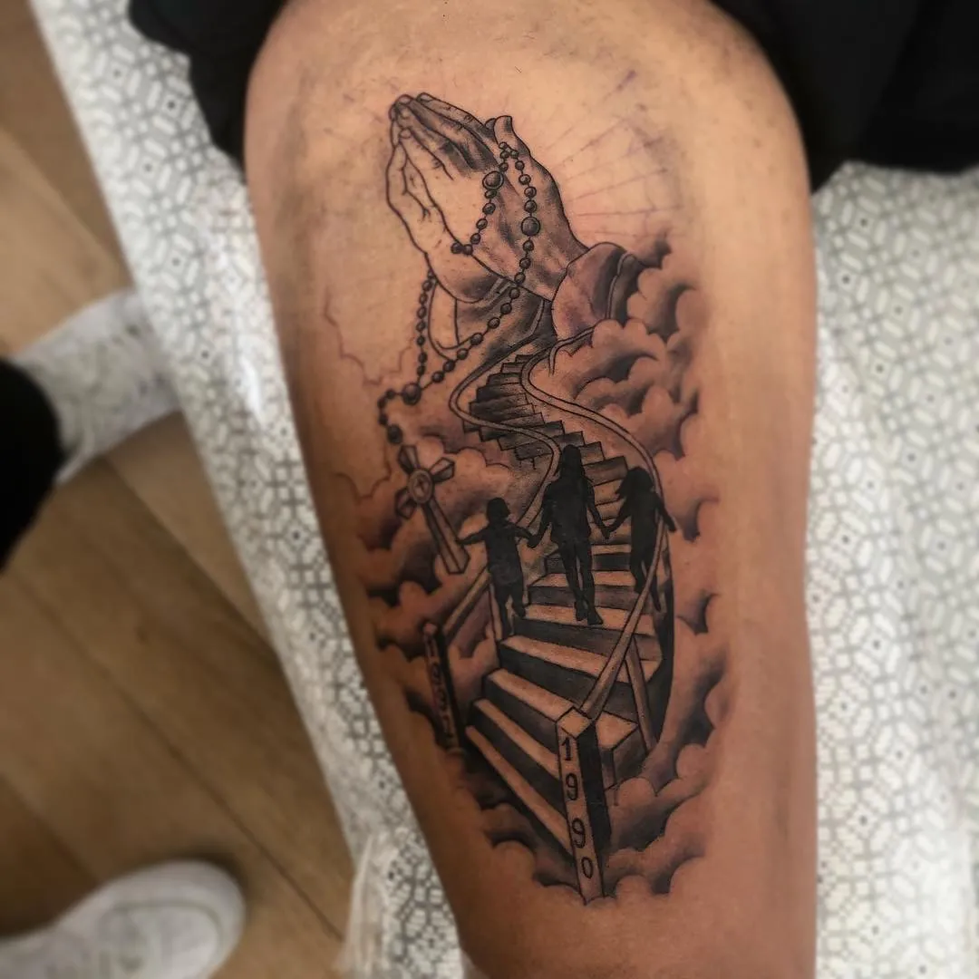Edwin Cardona, el 10 de Boca, tiene varios en su cuerpo y hace algunas horas agregó otro en su pierna. El motivo es religioso y presenta unas manos, un rosario, sus dos hijos y unas escaleras que simbolizan la subida a “las puertas del cielo”.