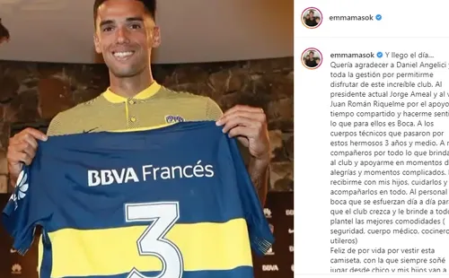 El lateral izquierdo publicó un mensaje a través de su cuenta oficial de Instagram en el que agradeció al club y a la gente por el apoyo durante todo este tiempo: