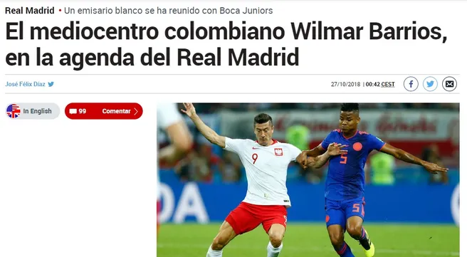 Hace unos días se conoció la noticia. En España vinculan a Wilmar Barrios con un gigante del fútbol mundial: el Real Madrid.