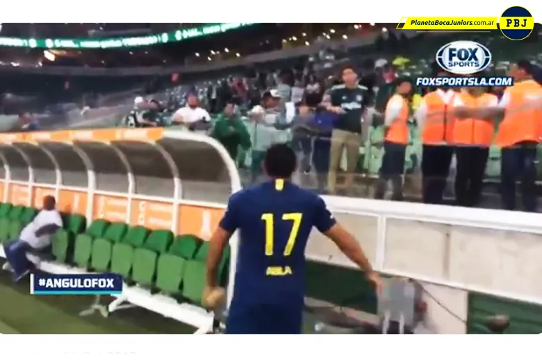 Desde la platea, un hincha de Palmeiras llamó a Wanchope Ábila. El delantero no dudó en acercarse. Y allí el brasileño le estrechó la mano y lo felicitó por el pase a la final. Enorme gesto.