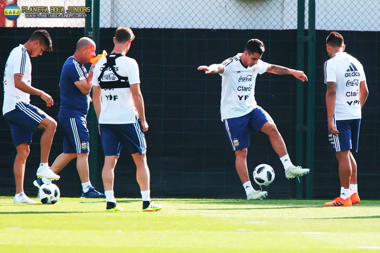 El plantel de Jorge Sampaoli se entrenó en doble turno y, tras las prácticas, realizó la característica sesión de fotos oficiales para la Copa del Mundo que se viene.
