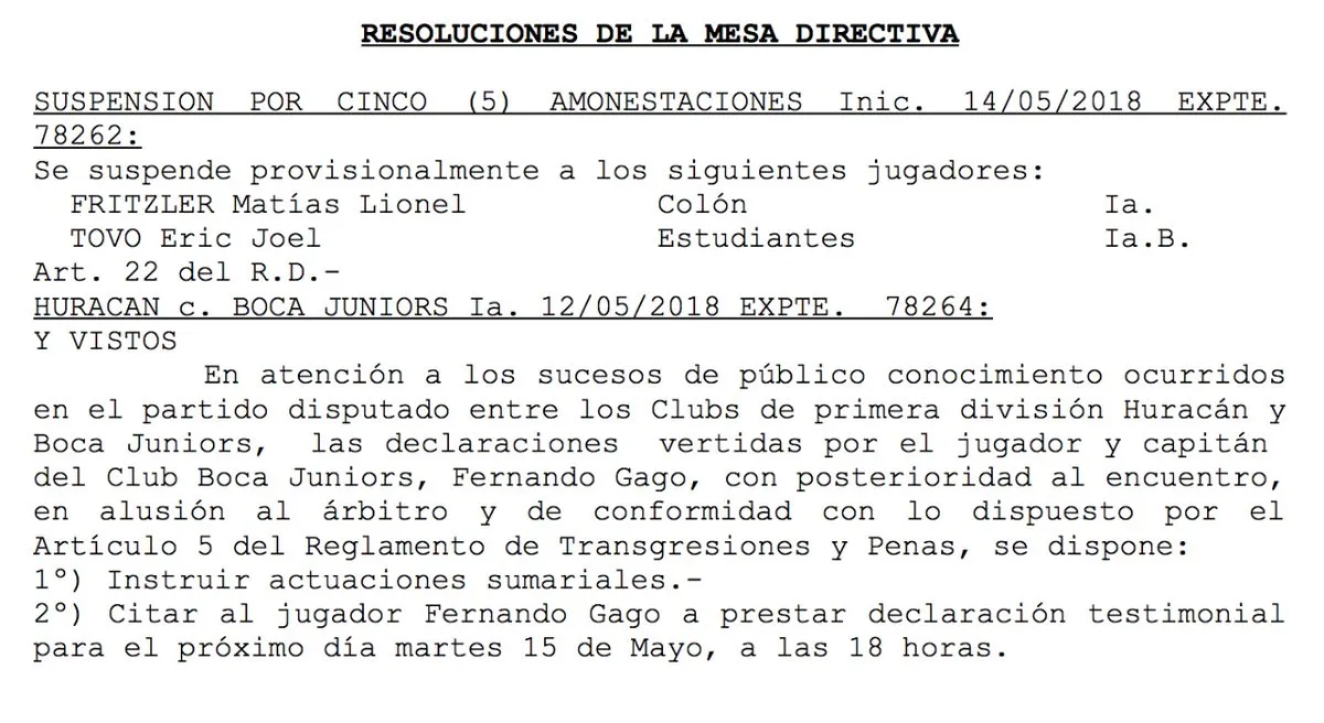 La noticia comenzó a circular hace algunas horas: Fernando Gago fue citado a declarar por el Tribunal de Disciplina debido a sus declaraciones sobre Fernando Rapallini, el pasado sábado en Parque Patricios.