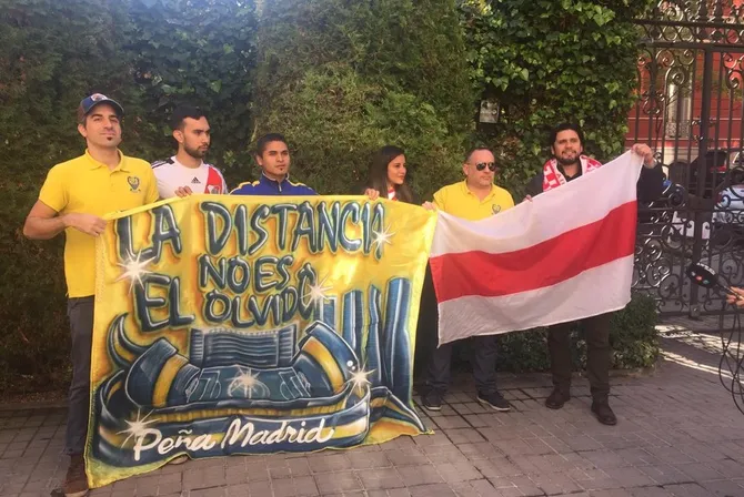 Después del anuncio de CONMEBOL de que la gran final de la Copa Libertadores será en el Santiago Bernabéu, hubo una gran acción en Madrid. La Embajada de Argentina en España invitó a hinchas de las filiales de Boca y River en la capital y compartió un momento con ambos.