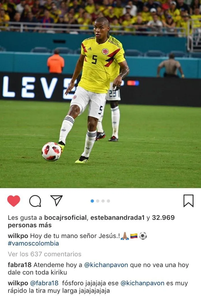 Y Frank Fabra se animó a “calentar” la previa. A modo de broma, por supuesto. El lateral le comentó una foto a Wilmar con el siguiente pedido: “Atendeme hoy a Pavón, que no vea una dale con toda kiriku”.